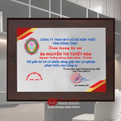 Bảng vinh danh gỗ đồng, bảng biểu trưng cao cấp, bảng vinh danh nhân viên, lãnh đạo, cá nhân xuất sắc dành cho doanh nghiệp, tổ chức. Dòng sản phẩm cao cấp, phù hợp với nhiều mức giá khác nhau. Khách hàng có thể đặt Cúp ngôi sao với nội dung riêng. Dịch vụ trọn gói, giá thành cạnh tranh nhất.