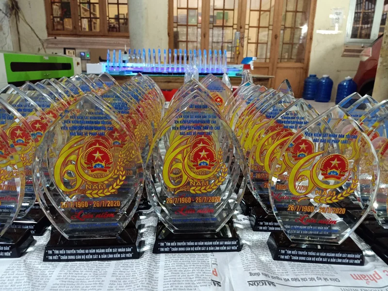Quà tặng kỷ niệm 60 năm ngày thành lập với nhiều mẫu khác nhau. Làm theo chất liệu, kích thước và nội dung riêng. Có nhiều mức giá khác nhau để khách hàng lựa chọn.