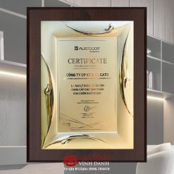 Sản phẩm được làm từ khung gỗ MDF sơn PU, khung nội dung bằng kim loại.. Thiết kế mẫu và kích thước theo yêu cầu khách hàng. Dạng Bảng chứng nhận nhà phân phối ngành nhựa còn dùng tặng trong nhiều sự kiện khác nhau.