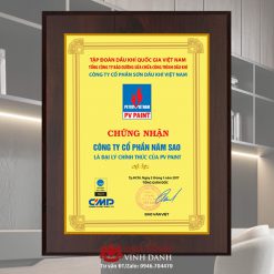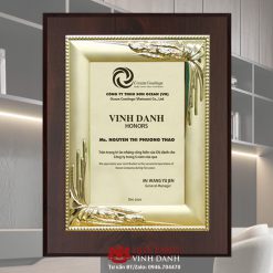 Sản phẩm được làm từ khung gỗ MDF sơn PU, nội dung in trên tấm kim loại.. Thiết kế mẫu và kích thước theo yêu cầu khách hàng. Dạng Bảng vinh danh khen thưởng cá nhân xuất sắc còn dùng tặng trong nhiều sự kiện khác nhau.