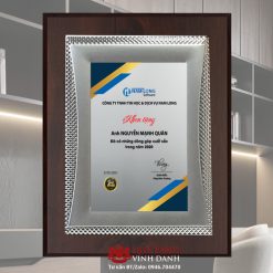 Sản phẩm được làm từ khung gỗ MDF sơn PU, nội dung in trên tấm kim loại.. Thiết kế mẫu và kích thước theo yêu cầu khách hàng. Dạng Bảng vinh danh tri ân nhân viên cống hiến còn dùng tặng trong nhiều sự kiện khác nhau.