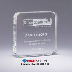 Chặn giấy pha lê hình vuông được làm từ pha lê trong. Phối thêm các màu khác theo yêu cầu, nội dung khắc theo yêu cầu riêng từng sự kiện. Sản phẩm phù hợp làm quà tặng doanh nghiệp. Ngoài Chặn giấy pha lê hình vuông theo mẫu tiêu chuẩn, khách hàng có thể đặt theo mẫu, kích thước riêng.