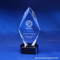Cúp lưu niệm khởi công dự án, cúp khen thưởng, cúp tôn vinh cao cấp, quà tặng tri ân. Được làm từ pha lê trong phối thêm các màu khác, nội dung khắc hoặc in theo yêu cầu riêng từng sự kiện. Ngoài mẫu tiêu chuẩn, khách hàng có thể đặt theo mẫu, kích thước riêng.