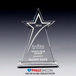 Cúp ngôi sao khen thưởng nhân viên, cúp vinh danh, cúp tôn vinh cao cấp, quà tặng tri ân. Cúp ngôi sao khen thưởng nhân viên được làm từ pha lê trong phối thêm các màu khác, nội dung khắc hoặc in theo yêu cầu riêng từng sự kiện. Ngoài mẫu tiêu chuẩn, khách hàng có thể đặt theo mẫu, kích thước riêng. Xưởng sản xuất chúng tôi sẽ đáp ứng nhu cầu của bạn về giá, số lượng và thời gian nhanh nhất.