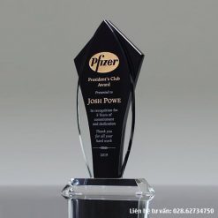 Cúp pha lê đen vinh danh, cúp khen thưởng, cúp tôn vinh cao cấp, quà tặng tri ân. Cúp pha lê đen được làm từ pha lê trong phối thêm các màu khác, nội dung khắc hoặc in theo yêu cầu riêng từng sự kiện. Ngoài mẫu tiêu chuẩn, khách hàng có thể đặt theo mẫu, kích thước riêng. Xưởng sản xuất chúng tôi sẽ đáp ứng nhu cầu của bạn về giá, số lượng và thời gian nhanh nhất.