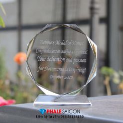 Kỷ niệm chương pha lê chúc mừng, biểu trưng tôn vinh cao cấp, kỷ niệm chương vinh danh, quà tặng tri ân, kỷ niệm chương giá rẻ được làm từ pha lê trong, phối thêm các màu khác theo yêu cầu, nội dung khắc hoặc in trực tiếp. Kỷ niệm chương pha lê chúc mừng có kích thước, mẫu mã rất đa dạng, phù hợp vinh danh, khen thưởng trong các sự kiện.