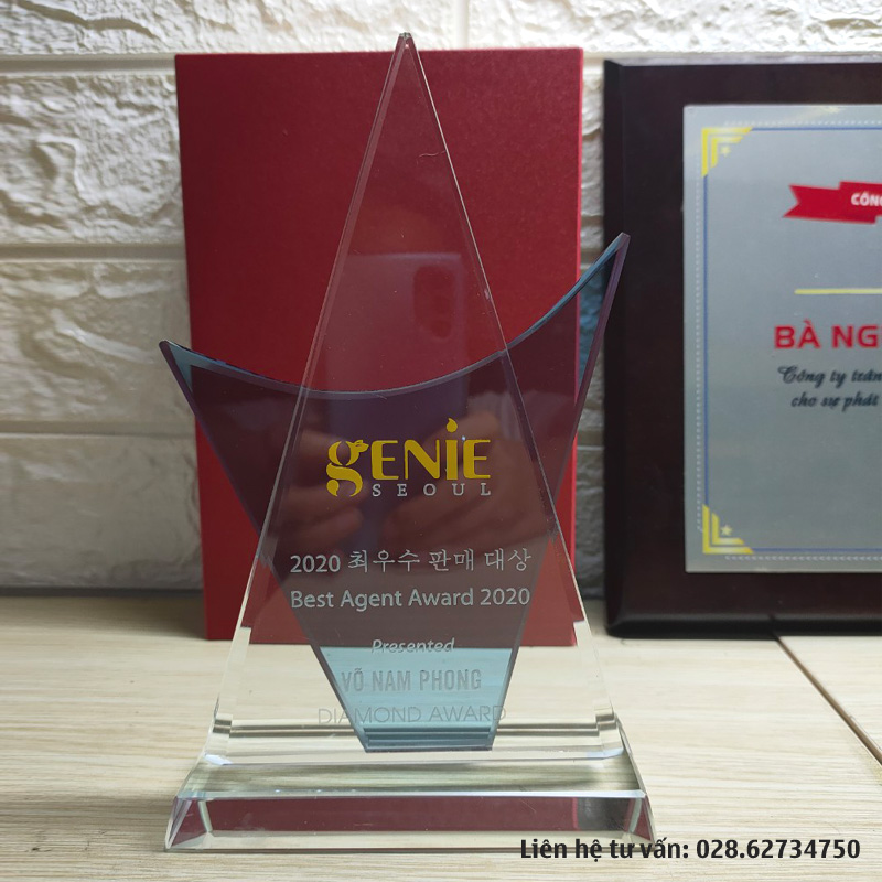 Công ty TNHH Sản xuất Thương mại Song Ngưu tại Tp.HCM thiết kế, sản xuất trực tiếp các loại sản phẩm: Bảng vinh danh cao cấp, Kỷ niệm chương gỗ đồng, kỷ niệm chương thủy tinh, kỷ niệm chương pha lê, cúp pha lê. Khách hàng sẽ nhận được ưu đãi tốt nhất về giá, thời gian nhận hàng và dịch vụ tốt nhất.