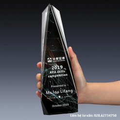 Cúp vinh danh pha lê được làm từ pha lê trong, xanh hay đen. Mỗi loại màu mang một vẻ đẹp khác nhau. Quà tặng pha lê mang vẻ đẹp cao cấp cho người nhận. Quà tặng này truyền tải thông điệp thương hiệu. Cúp pha lê được tặng trong nhiều sự kiện khác nhau.